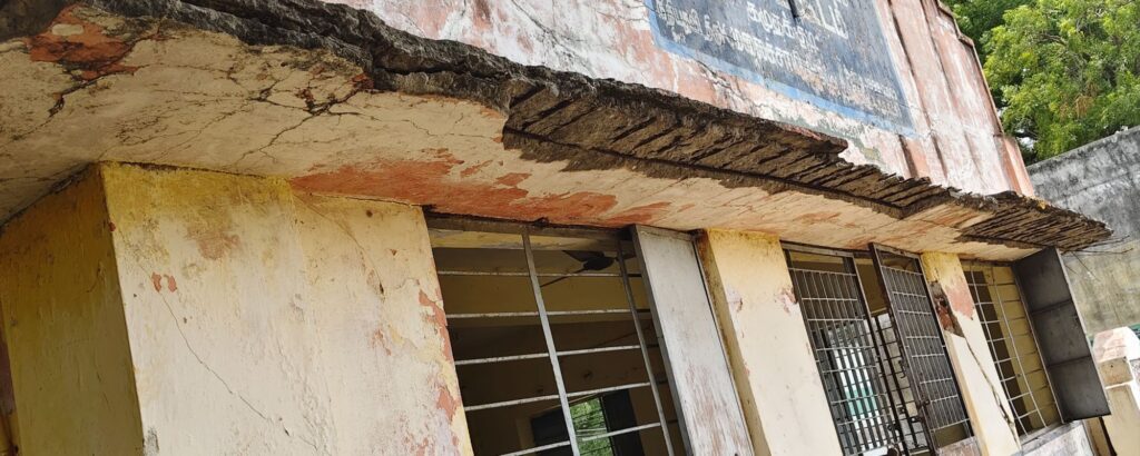 கட்டிடம் முழுவதும் விரிசல் ஏற்பட்டு அவ்வப்போது மேற்கூரை சிமெண்ட் விழுந்து வருவதால் மேற்கூரையில் உள்ள கம்பிகள் துருப்பிடித்து காட்சி பொருளாக சமுதாயக்கூடம் இருந்து வருவதாக பொதுமக்கள் கடுமையாக குற்றம் சாட்டுகின்றனர். 25 ஆண்டுகளுக்கு முன்பு கட்டப்பட்ட சமுதாயக்கூடம் என்பதால் எப்போது வேண்டுமானாலும் இடிந்து விழலாம் என்ற அச்சத்தோடு மக்கள் பயன்படுத்தி வருகின்றனர்.
